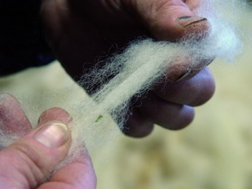 of fleece from his flock at La Moutonnière, the sheep dairy and